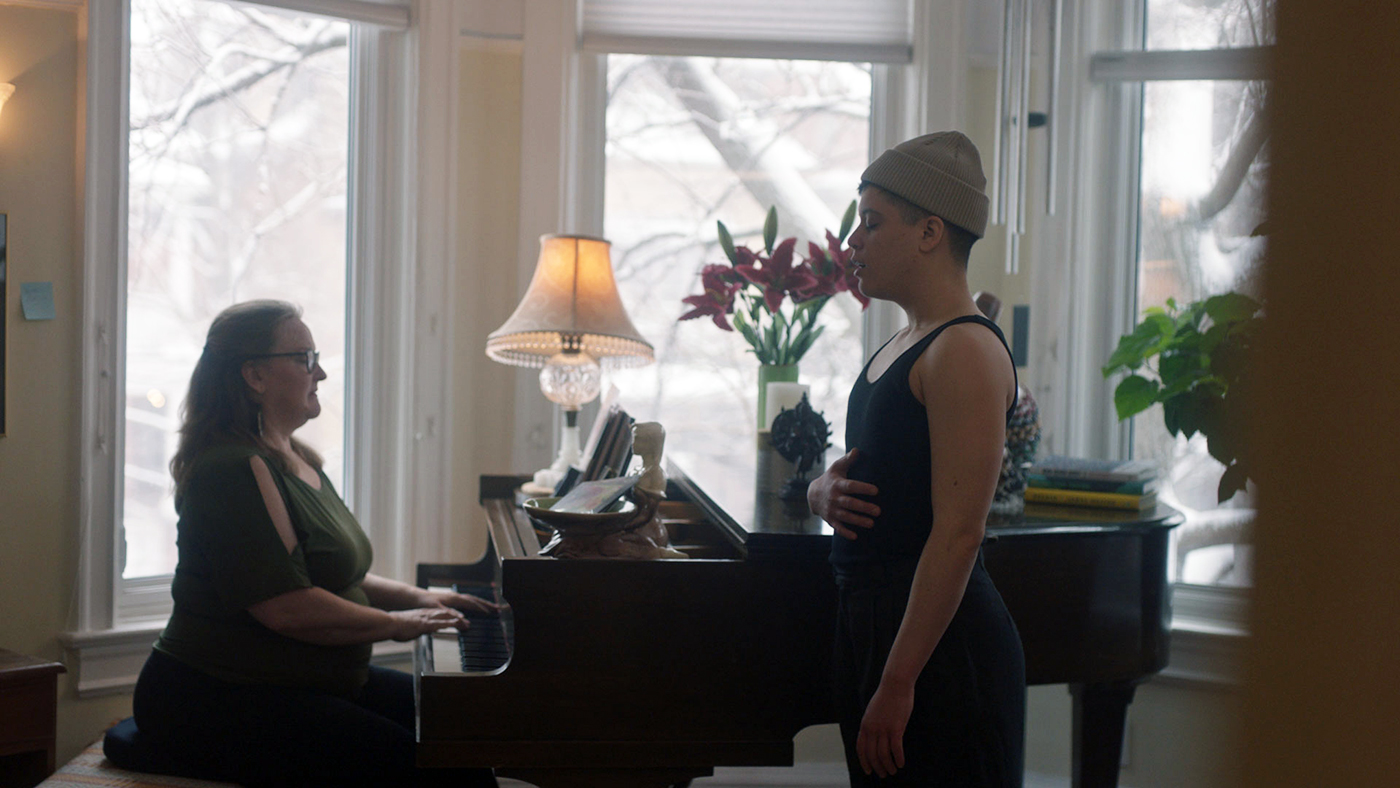 Z lives to sing — musical theatre is his whole world, and his star is rising fast. But when a big audition goes off the rails, he’s left questioning everything: his career, his relationship, his voice, and how his identity as a newly trans masc performer fits into it all. Just when it seems like curtains, Z meets a warm, no-nonsense vocal coach who helps him rediscover his sound. Add a new gig as a barback and a charming boss named Santi into the mix, and suddenly life is hitting a different kind of high note. As Z finds a new voice that reflects who he is now, the story becomes a celebration of resilience, self-discovery, and newfound identity. Synopsis – Kathleen Mullen/Frameline