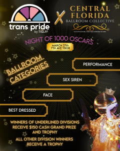 - 10pm - 12 / 12:30 Trans Pride Ball with Central Florida Ballroom Collective